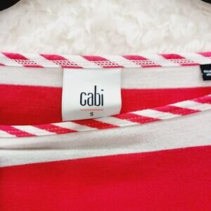 Cabi, size small, striped tank top, red white stripe top, asymmetrical hem tank, nautical fashion, sailorcore style, cruise clothing, resort tank, classic knit top, coastal vacation, sleeveless blouse