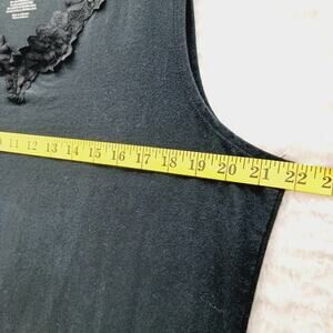White Stag, black lace tank, plus size goth top, fairygoth tank, Y2K lace cami, XXL floral trim shirt, cotton spandex top, gothic casual wear, whimsycore summer tank, sleeveless black blouse
