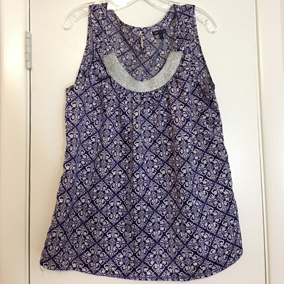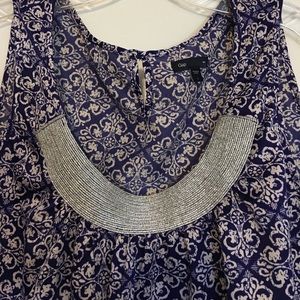 Blue and white light tank top blouse that is perfect for warm weather. It is dressier than a cotton tank top and looks good with jeans and shorts. Never been warn.