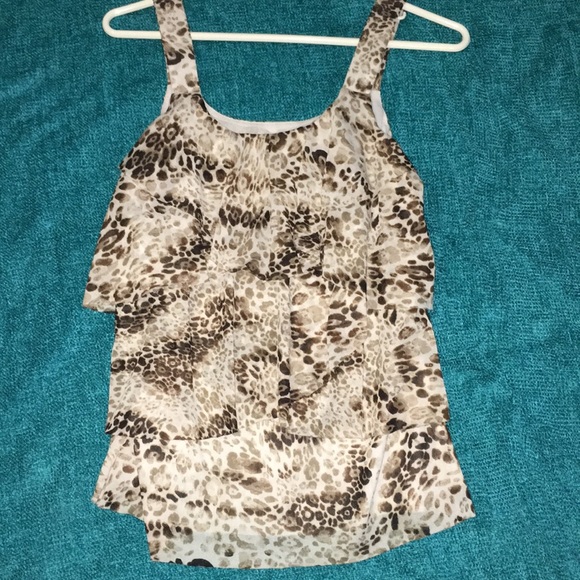 Tank with layered feathery print material appearance of leopard print great condition