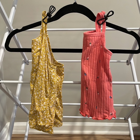Old navy tank bundle. Floral white and golden yellow strappy tunic tank& a Floral ribbed tank in coral with white and blue flowers. Great condition! Old navy. 2T. First owners. Will bundle and send savings and shipping discounts, just ask! Washed on cold, in free and clear and hung dried by us. Smoke free, dog friendly home.