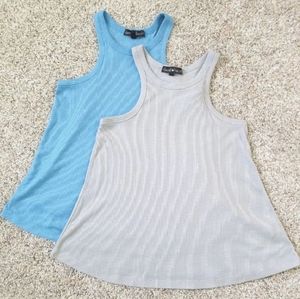2 tank tops High neck, flattering for shoulders Blue and grey tops Each only worn once Both size small