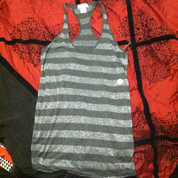 Dark and light grey stripped sparkly tank top