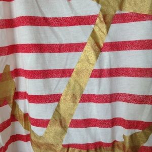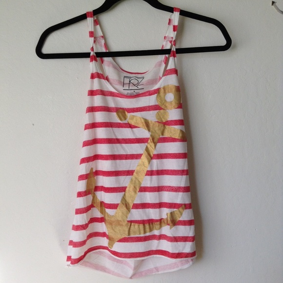 Red and white striped tank top with gold anchor on it. The straps have little knots in them that go perfectly with the anchor/ sailor theme of the shirt.
