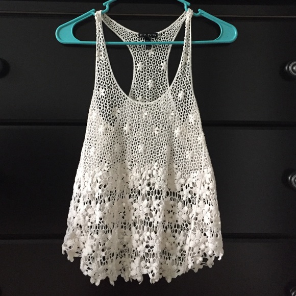 Tank top with a razor back. Floral lace printings in it. Only have worn it once