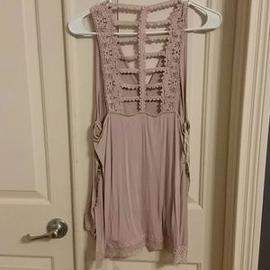 Beaded front tank top open style in back. Bottom front is Lowe than bottom back very light purple in color