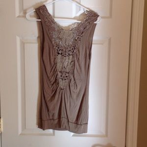 Light weight tank top, lace back. Super cute to wear with any outfit dressed up or down. Lacy back and low scoop front.