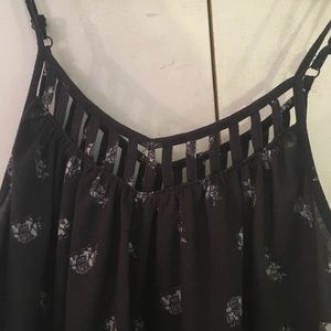Cute grey elephant tank top with adjustable straps. Shorter in the front and longer in the back with detail at the chest.