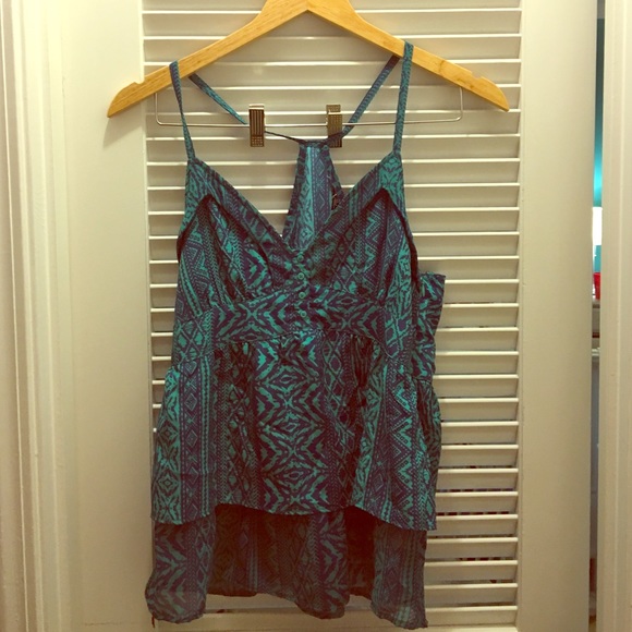 Green and navy tank top. Very cute and comfortable. Lightly worn