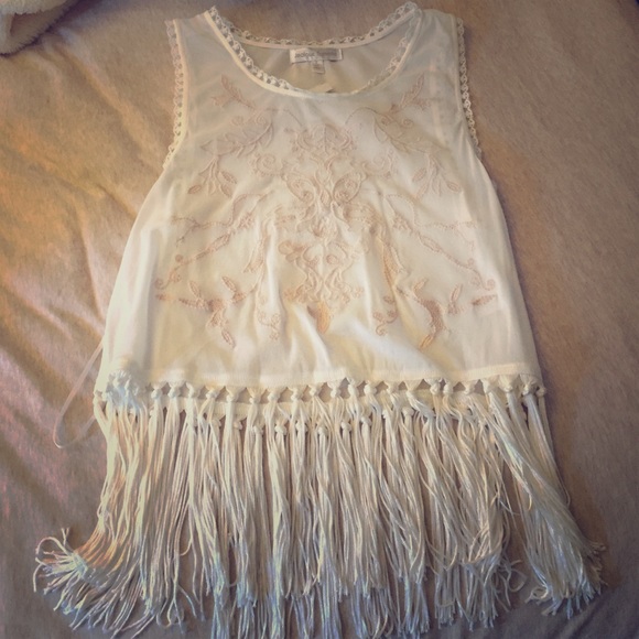 It's a light sheer tank top with fringe and really pretty embroidery! It's never been worn and still has the tags