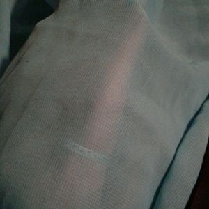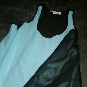 This shirt is impossible to photograph. It looks great on. Flowy 100% polyester. Blue and black tank top. True to size.