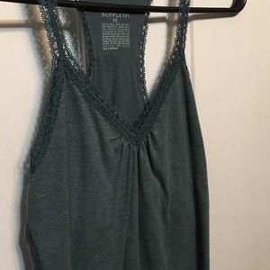Dark green tank top from Target. Lacy straps. Extra bralette support in too part.