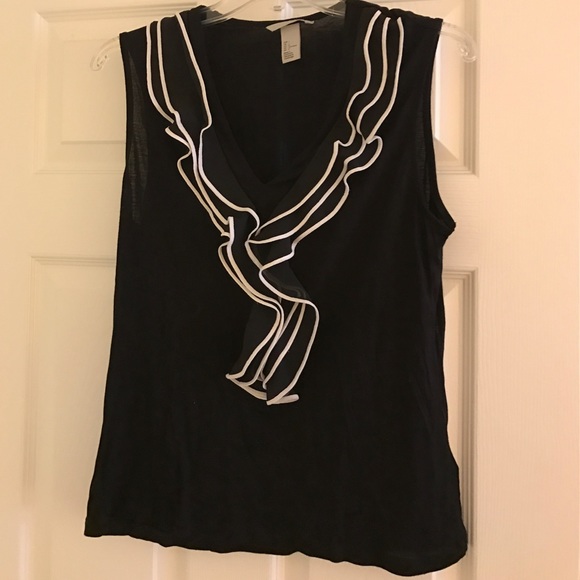Black tank top with white ruffled piping in front