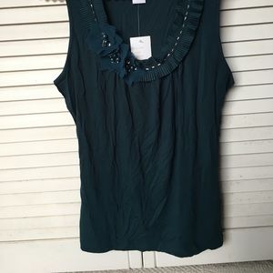 Beautiful teal tank top with cute details at neckline. Soft stretchy fabric.