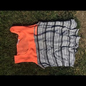 Fluorescent pink and b/w striped tank top with pocket