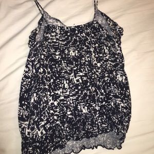 Lola tank top. Sinches at the waist. Dark navy/black with white pattern. Zipper down front. Can easily be worn for a night out! Runs a little small.