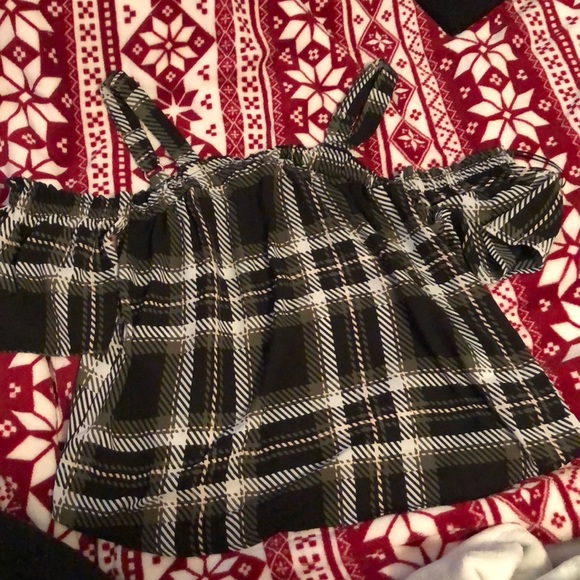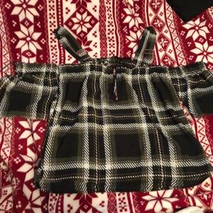 Black plaid tank top with thin fabric (not see through) too small for me. Never worn! Has zipper down the back.