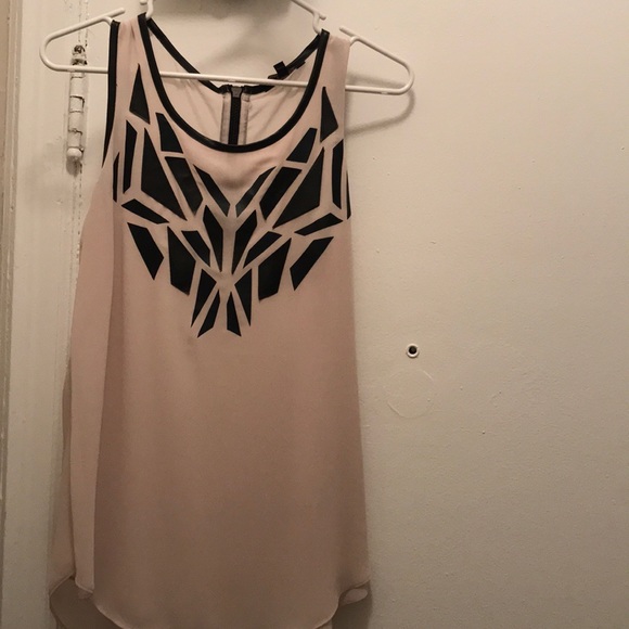 Nude colored tank top with zipper in back and black textured pattern, fits loose
