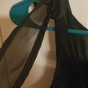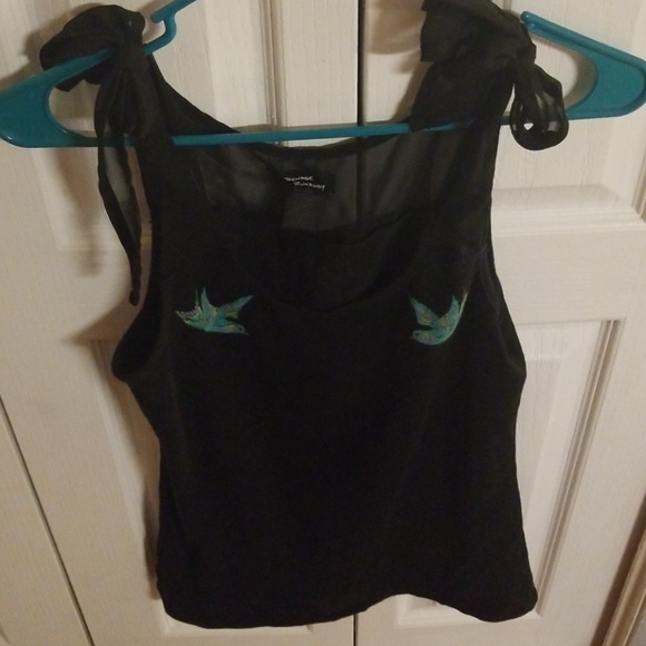 Black cotton with blue birds, sheer ties