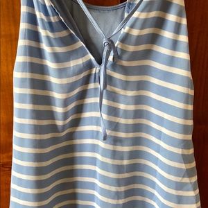 Light blue and white tank top with elastic waist band.