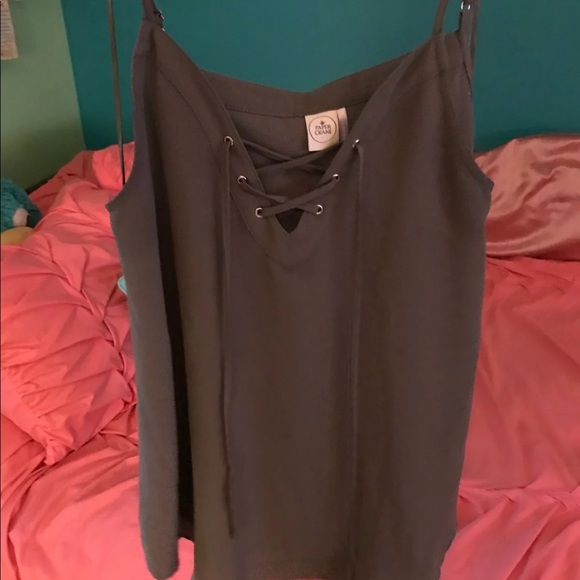 Army green tank top with lace tie