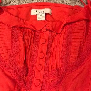 Red tank top. Ruffled top and spaghetti straps.