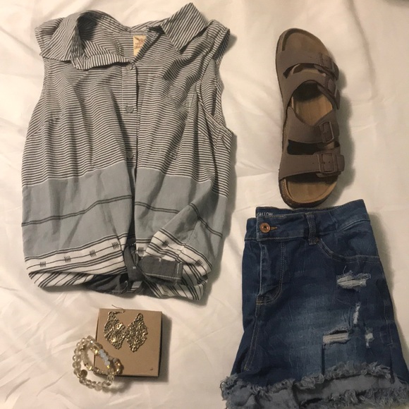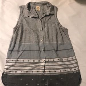 Button up multi printed taped up. There is some discoloration under the armpit area. Super cute for fall and layering. From a smoke free home
