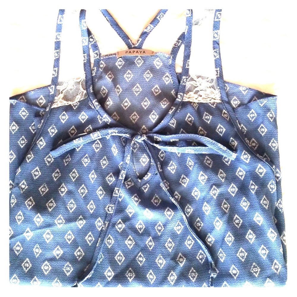 Great condition laced tank sleeve with blue cute pattern