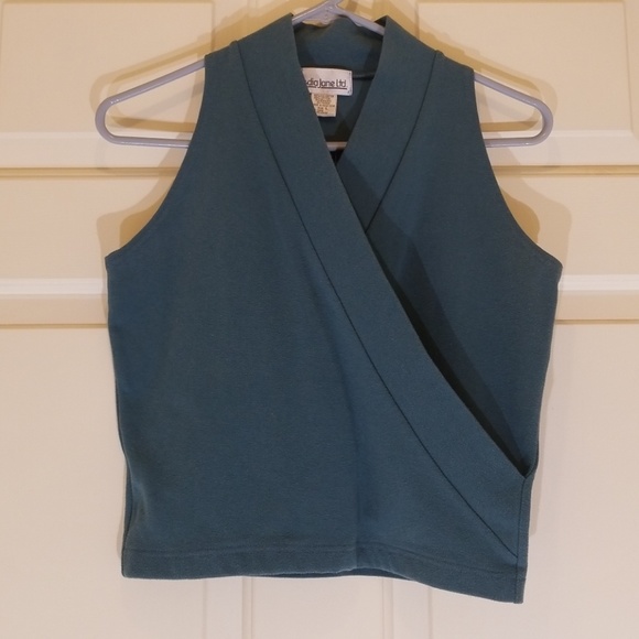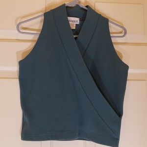 Tank top. Cropped. Cute built in crossover detail in the front. A blue/gray color. Great condition. Size L.