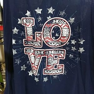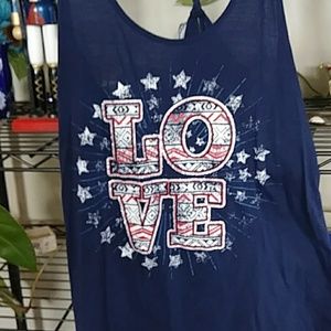 Navy blue tank top, American red, white and silver, eye-catching strappy back, soft light tee shirt material.