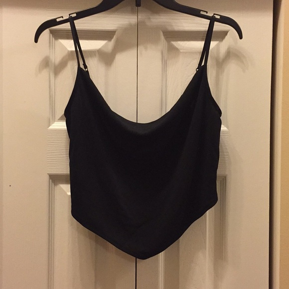 Black tank top with cut out in the back. Never been worn. Tags still attached. 70% rayon; 30% polyester.
