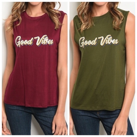 “Good vibes” women’s tank top Only olive green available
