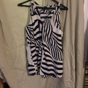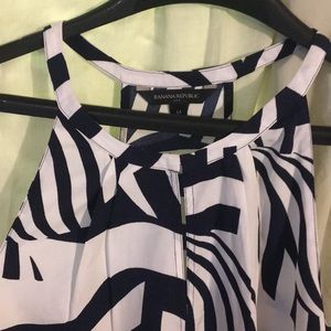 Wavy pattern of white and navy blue tank top with slit in the top