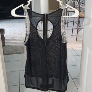 Unique tank with LoVe on front & sheer material and zipper in back. Gently used and in excellent condition.