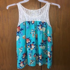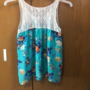 Multicolored tank top with a white lacing on top