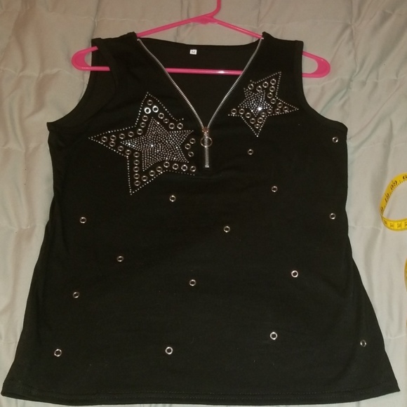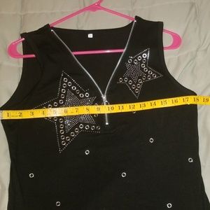 V neck zippered black tank top, nwot