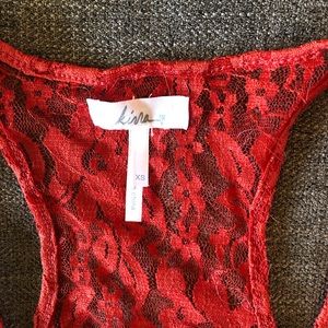Pretty summer coral tank with lace details on back. Some worn noticeable but still really good condition. Not cropped but shorter in length. Really cute! Size XS