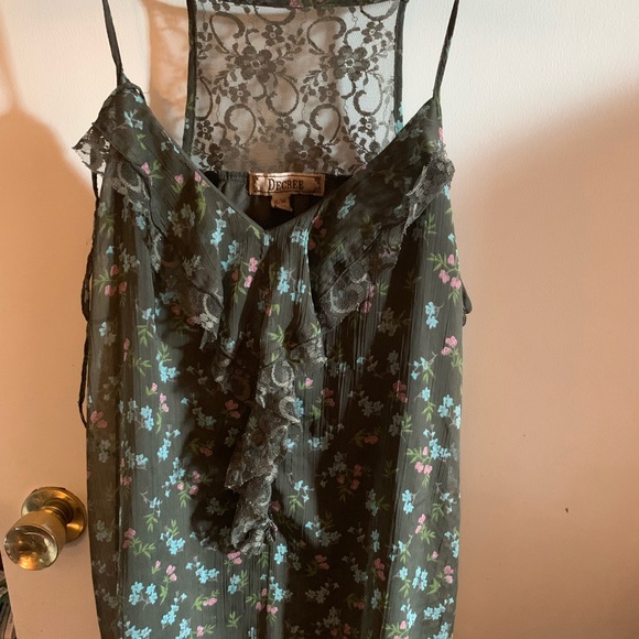 Green spaghetti strap lacy tank top