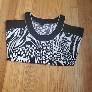 Black and white tank top. It is a size XL but runs a little small. Smoke free home.