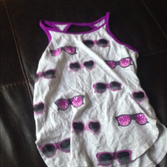 Purple sparkle, sunglasses in it tank top!