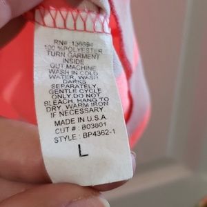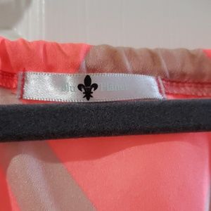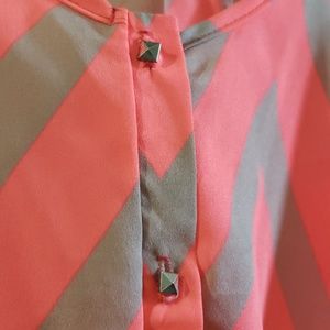 Bright coral and tan chevron with silver accent buttons that ties in the front and longer in the back. Comes from a smoke free home.