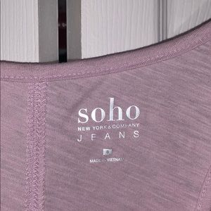 Light pink/lavender color, loose fit, v neck