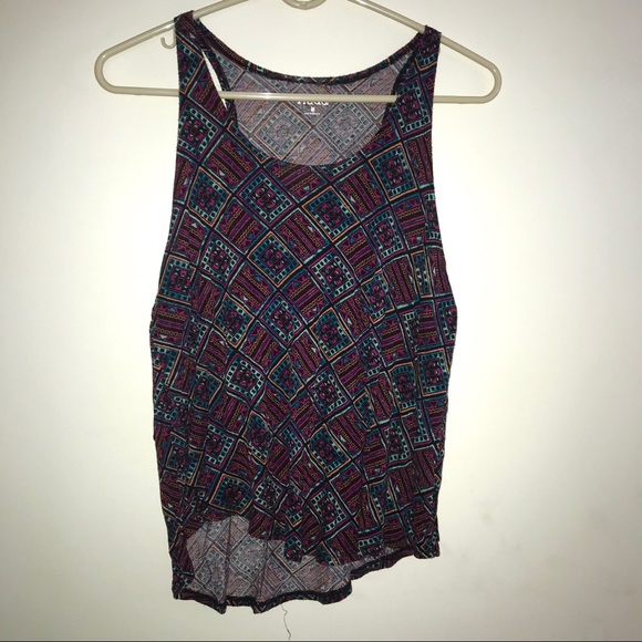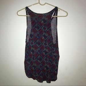 Aztec/tribal print Thicker straps Full coverage back Worn once Longer in the back Flowy Orange, blue, teal, black, purple