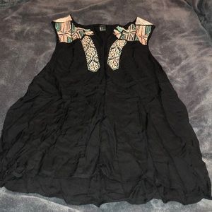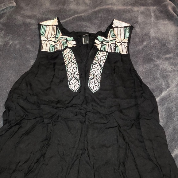 Uniquely embroidered tank top from forever 21! Never worn is great for warm weather! The base shirt is black and the embroidery is a very light dusty pink and a light aqua