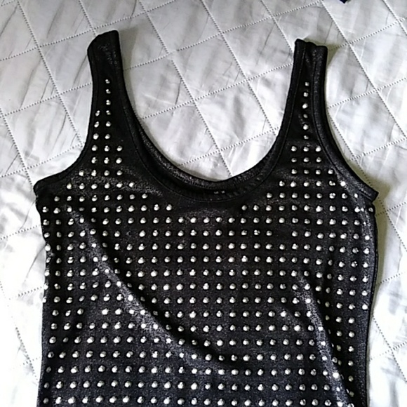 Soft glitter black in2u tanl top with shimy ailver studs!