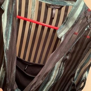 Comes with two shirts, an all black spaghetti strap tank top and the striped tank with the longer sleeve.