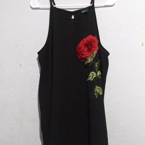 Black tank top with sewn on flower