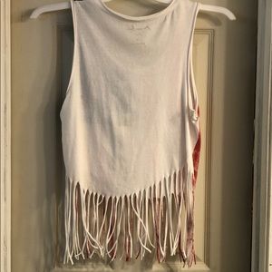 American flag tank top with cut up bottom. Worn once, barely noticeable tan stain on the back, size M.