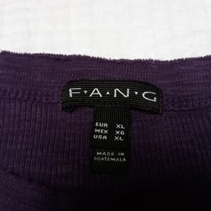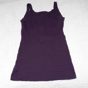 Print with spots of sparkles. Size XL but fits more like a Medium in my opinion. Purple.