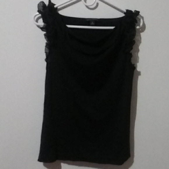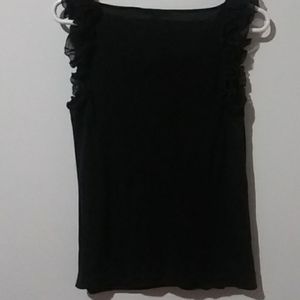 Black stretch tank top with frill from shoulders down to the armpits